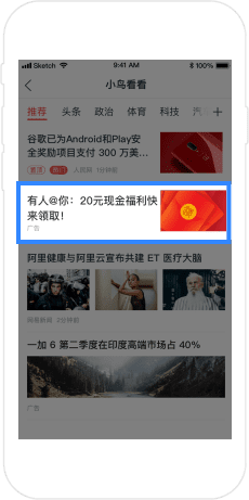 穿插在新闻、社交等内容流媒体中的广告形式,提升用户体验
